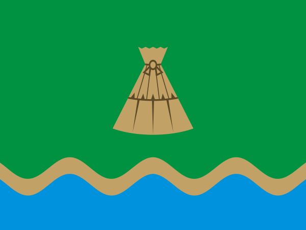 Флаг: верхняя часть прямоугольного полотнища зелёная, нижняя синяя, они разделены жёлтой волнистой полосой. В центре зелёной части полотнища жёлтая скирда ржи. Нормальные размеры флага 100 x 150 см, соотношение ширины и длины 6:9.