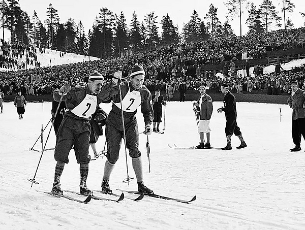Впервые интерес к лыжам именно как к спортивному снаряду проявили норвежцы. В 1733 году Ганс Эмахузен опубликовал первое наставление по лыжной подготовке войск со спортивным уклоном, а в 1767 году в Норвегии были проведены первые задокументированные соревнования, включавшие гонки, стрельбу и спуски[2]. В 1877 году в Норвегии было создано первое лыжное спортивное общество, вскоре аналогичные клубы появились в Финляндии и других европейских странах[2].