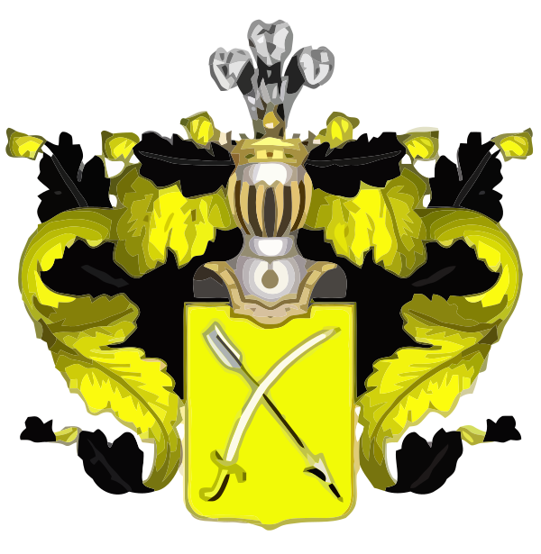 В щите, имеющем золотое поле, изображены крестообразно Сабля и Стрела.