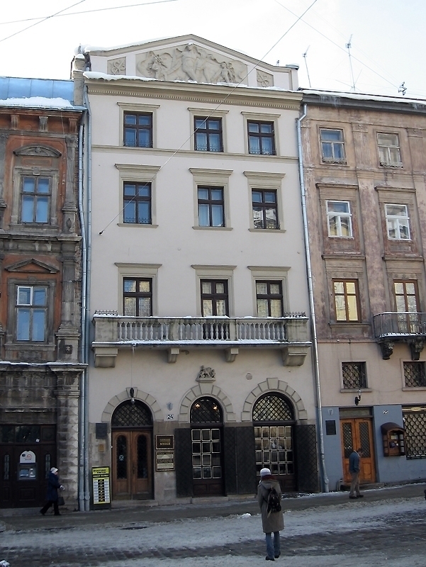 | Пл. Рынок, 6. Первое собственное здание музея — Королевская камяница, бывший дворец польского короля Яна III Собеского. Ныне — отдел исторических ценностей и выставка художественного серебра. | Пл. Рынок, 24. Отдел истории древнего мира и средневековья. | Экспозиция Львовского исторического музея во дворце Бандинелли |