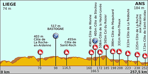 По сравнению с прошлым годом дистанция увеличилась на 2 километра и снова появился côte de la Roche-en-Ardenne.