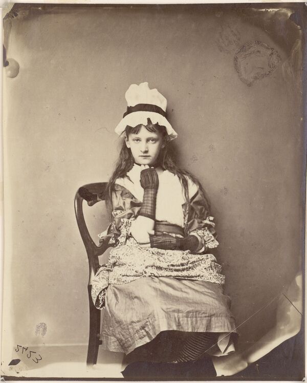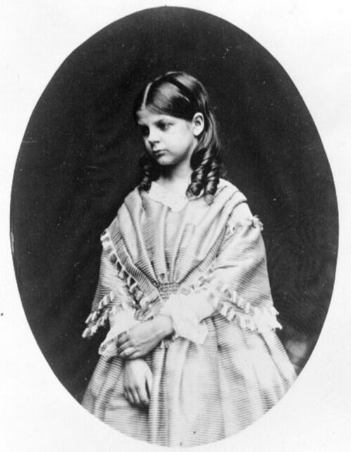 - Агнес Грейс Уэлд (англ. Agnes Grace Weld, 1849—1915) — племянница поэта Альфреда Теннисона, была дочерью Чарльза Ричарда Уэлда (1813—1869), писателя, который шестнадцать лет прослужил помощником секретаря и библиотекаря в Лондонском королевском обществе, и Энн Уэлд (в девичестве Селвуд). В детстве неоднократно позировала для фотографий Льюиса Кэрролла, Джулии Маргарет Камерон[39] и Оскара Густава Рейландера. Её тётя (сестра матери) стала супругой Альфреда Теннисона, с этой семьёй девочка и её родители поддерживали тесные отношения. Агнес Уэлд никогда не выходила замуж, посвятив свою жизнь благотворительности и потратив на неё почти всё доставшееся ей наследство. Она была известным в своё время публицистом, опубликовав при жизни четыре книги, посвящённые религии или содержащие воспоминания об Альфреде Теннисоне[40].