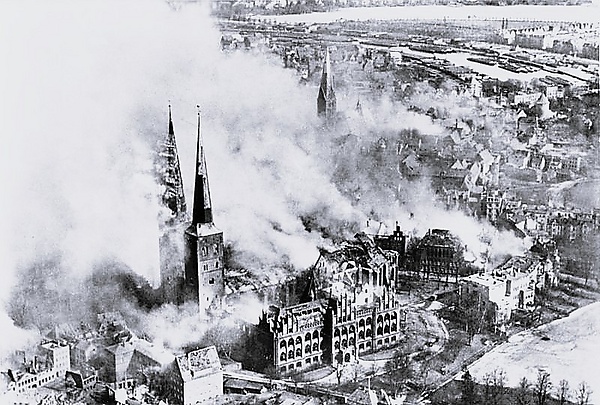 В ночь вербного воскресенья с 28 на 29 марта 1942 года во время бомбардировки Любека, разрушившей пятую часть исторического центра города, несколько бомб упало в непосредственной близости от собора и вызвали обрушение восточной части сводов хора на главный алтарь 1696 года. Пожар в соседних помещениях собора, занятых музеем, перекинулся на стропила. К середине дня обрушились башни, орган работы Арпа Шнитгера и его помощника Ганса Гантельмана стал добычей пожара. Однако большую часть внутреннего убранства (триумфальный крест и практически все средневековые створчатые алтари) удалось спасти. Уже после войны в 1946 году незакреплённый фронтон северного поперечного нефа рухнул на притвор, почти полностью разрушив его.
