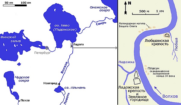 Общая картина исторического развития в регионе была предложена ещё до обнаружения Любшанской крепости Ю. Кальмером и с небольшими уточнениями принимается историками по сей день: продвижение переселенцев с Аландских островов к Ладоге началось в вендельский период и к их взаимодействию с финно-угорским населением в VII веке подключились ильменские словене Поволховья и Приильменья[4].