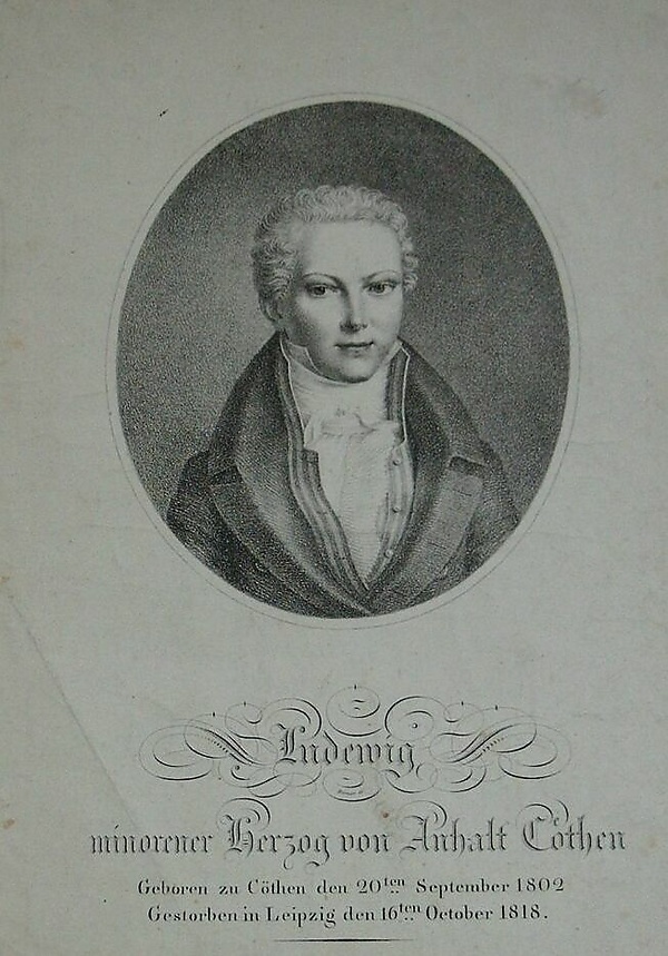 Герцог Людвиг — сын принца Людвига Ангальт-Кётенского. Отец умер раньше своего брата, правившего в Ангальт-Кётене князя Августа Кристиана. Поскольку бездетный князь Август Кристиан умер ещё в 1812 году, болезненный 10-летний мальчик Людвиг вступил на ангальт-кётенский престол при регенте, главе Ангальтского дома герцоге Леопольде III Фридрихе Франце Ангальт-Дессауском.