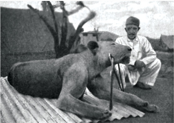 В марте 1898 года началось строительство постоянного моста через реку Цаво — участка Угандийской железной дороги. Строительством руководил Джон Генри Паттерсон. Более девяти месяцев, с марта по декабрь, рабочие подвергались нападениям двух львов-людоедов. Рабочие, пытаясь защититься от львов, строили вокруг палаток ограждения из колючего кустарника (бома), но они не помогали. Из-за нападений сотни рабочих покинули Цаво, и строительство было приостановлено. 9 декабря 1898 года Паттерсону удалось застрелить первого льва. 29 декабря был убит и второй лев.
