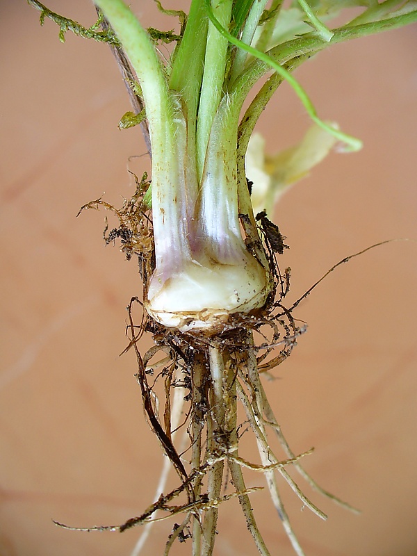 У основания стебля формируется округлое клубневидное утолщение с пучком довольно длинных утолщённо-шнуровидных мясистых корней. Стебель прямостоячий, одно- или малоцветковый, покрыт отстоящими извилистыми волосками.
