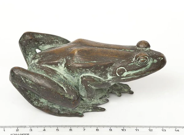 Скульптура изображает земноводное животное с характерными анатомическими особенностями. Лягушка представлена в сидячей позе, готовой к прыжку. Задние пятки слегка задраны, а левая передняя лапка расположена впереди задней. Голова смотрит прямо, что подчёркивает внимательность к деталям.