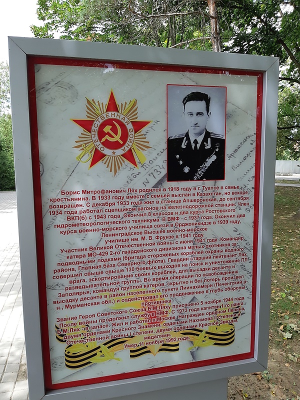 - В Туапсе на Аллее Героев установлена стела в честь Б. М. Ляха.