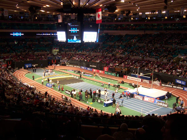 Стандартно включает в себя овальную 200-метровую дорожку, состоящую из четырёх-шести отдельных дорожек, дорожку для бега на 60 метров и секторов для прыжковых видов. Единственный вид для метаний, входящий в программу зимнего сезона в закрытых помещениях — это толкание ядра и, как правило, он не имеет специального сектора и организуется отдельно на месте других секторов. Официальные соревнования IAAF проводятся только на 200-метровой дорожке, однако существуют стадионы с нестандартной дорожкой (140 метров, 300 метров и другие).