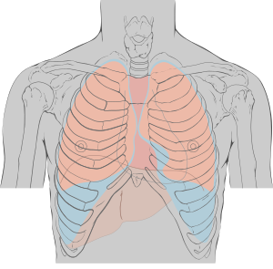 Обычный спокойный вдох связан с деятельностью мышц диафрагмы и наружных межрёберных мышц, если вдох интенсивный, подключаются некоторые другие (вспомогательные) мышцы туловища и шеи, такие как широчайшие мышцы спины, трапециевидные мышцы, грудино-ключично-сосцевидные мышцы и другие. При вдохе диафрагма опускается, рёбра поднимаются, расстояние между ними увеличивается. Обычный спокойный выдох происходит в большой степени пассивно, при этом активно работают внутренние межрёберные мышцы и некоторые мышцы живота. Интенсивный выдох происходит активно, с участием прямых мышц живота, подвздошно-рёберных мышц и других. При выдохе диафрагма поднимается, рёбра перемещаются вниз, расстояние между ними уменьшается[19].