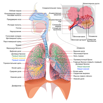 - ↑ Лёгкие : [арх. 3 января 2023] // Лас-Тунас — Ломонос. — М. : Большая российская энциклопедия, 2010. — С. 147. — (Большая российская энциклопедия : [в 35 т.] / гл. ред. Ю. С. Осипов ; 2004—2017, т. 17). — ISBN 978-5-85270-350-7.
