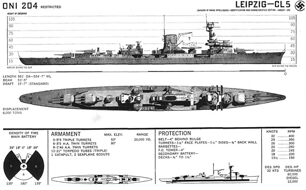 В 1928 году немецкий конструктор Блешчмидт получил задание на проектирование очередного легкого крейсера для Рейхсмарине — будущего крейсера «Лейпциг»[2]. Основа проекта — крейсера типа «К», но с некоторыми изменениями. К числу важнейших следует отнести: добавление третьего вала, сведение дымоходов котлов в одну трубу (для вывода выхлопа дизелей была предназначена небольшая труба возле возвышенной кормовой башни), усиление конструкции корпуса, применение булей, охватывавших броневой пояс и бульбообразную носовую оконечность. На средний вал работали дизели, развивавшие суммарную мощность 12 600 л. с. и обеспечивавшие скорость 18-19 узлов[1].