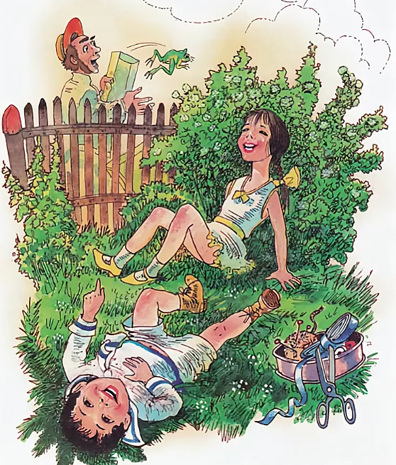 | «Находка» | Лёля и Минька придумали шутку — положили в коробку из-под конфет лягушку и паука, завязали красивой лентой и спрятали в саду. Коробку заметил прохожий. Когда он открыл её, лягушка выпрыгнула. Увидев его испуг, Лёля и Минька засмеялись. Незнакомец поймал брата и сестру и оттрепал Миньку за ухо. Прибежали родители. Мама начала возмущаться и сказала, что прохожего надо арестовать, а папа встал на его сторону, потому что считал, что его дети поступили дурно. Прошло время. Минька стал студентом. Однажды летом он оказался в похожей ситуации — Минька заметил на тротуаре кошелёк, хотел поднять, но находка «неожиданно отодвинулась» — кошелёк тянули на верёвочке дети. Минька вспомнил, что когда-то сам разыграл прохожего, и не стал злиться на озорников[5]. |