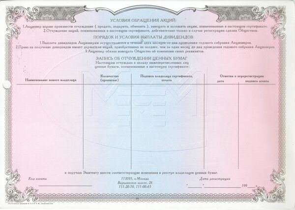 Было заявлено, что вкладчик вправе потребовать формальной регистрации сделки и оформления акций на своё имя. Но зарегистрированные акции компания выкупать назад не будет. Кроме билетов АООТ «МММ», в первых числах августа 1994 г. были эмитированы облигации, которые в оборот практически не поступили.