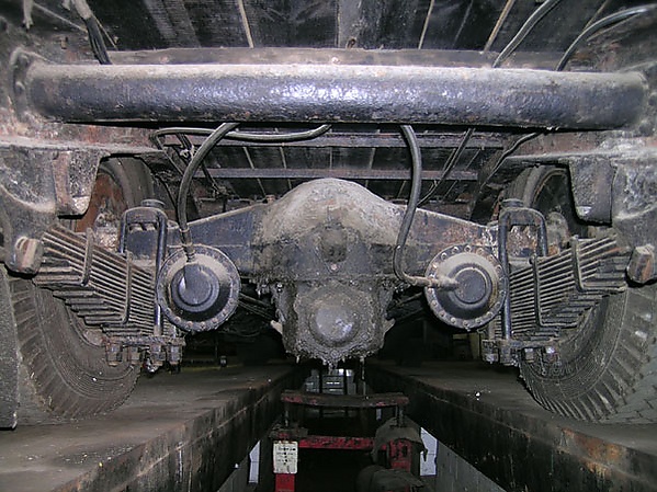 Оба моста подвешиваются к раме МТБ-82 на полуэллиптических листовых рессорах. Передний и задний мосты существенно различаются по конструкции, так как, помимо общих функций, они выполняют свои специфические задачи. Передний мост является менее массивным и сложным по устройству, чем задний; он содержит в себе механизм поворота колёс. Задний мост состоит из массивной балки, прикрывающей полуоси колёс и главную передачу червячного типа, передающую крутящий момент с карданного вала от тягового двигателя на полуоси колёс.