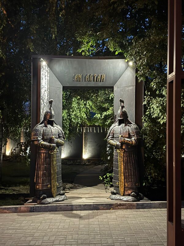 - На вершине горы Малая Синюха в Республике Алтай создан тематический этнопарк «Хранитель Большого Алтая» по мотивам алтайского героического эпоса «Маадай-Кара». В парке установлено 10 арт-объектов из металла высотой от 2 до 5 метров, созданных Аржаном Ютеевым[15].