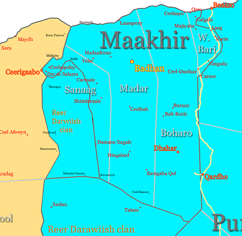 1 июля 2007 года в Бадхане, после стычек между Сомалилендом и Пунтлендом, было провозглашено автономное Государство Маахир[2]. Целью его создания была не полная независимость, а борьба за самостоятельность внутри будущего единого сомалийского государства. Такой же стратегии придерживался и Пунтленд, в то время как Сомалиленд стремился к полной независимости. За Сомалилендом и Пунтлендом при этом было закреплено право использовать нефтяную концессию по территории Санаг[3] без согласия местного руководства[4].
