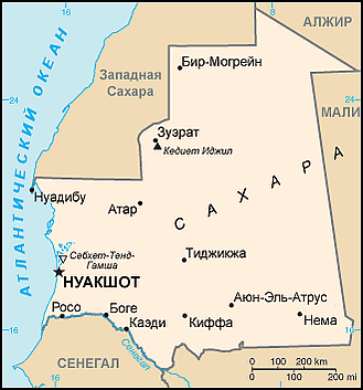 Маврита́ния (араб. موريتانيا), полное название — Исла́мская Респу́блика Маврита́ния (араб. الجمهورية الإسلامية الموريتانية) — государство в Западной Африке, омывается с запада Атлантическим океаном. Граничит с Западной Сахарой на северо-западе, с Сенегалом на юго-западе, с Алжиром на северо-востоке, с Мали на юге и востоке.