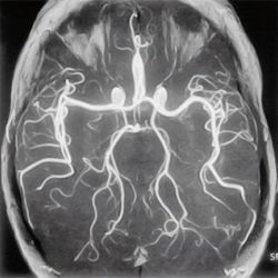 Магнитно-резонансная ангиография (МРА) — метод получения изображения просвета сосудов при помощи магнитно-резонансного томографа. Метод позволяет оценивать как анатомические, так и функциональные особенности кровотока. МРА основана на отличии сигнала от перемещающихся протонов (крови) от окружающих неподвижных тканей, что позволяет получать изображения сосудов без использования каких-либо контрастных средств — бесконтрастная ангиография (фазово-контрастная МРА и время-пролётная МРА). Для получения более чёткого изображения применяются особые контрастные вещества на основе парамагнетиков (гадолиний).