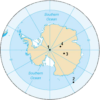 Расположение южного магнитного полюса не совпадает с географическим южным полюсом. В настоящее время он лежит на краю Антарктиды.