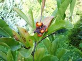 Плод — цилиндрическая сборная листовка длиной 5—6 см, остроконечная, скрученная вследствие недоразвития отдельных листовок, зеленоватая, на освещенной стороне розово-красная.