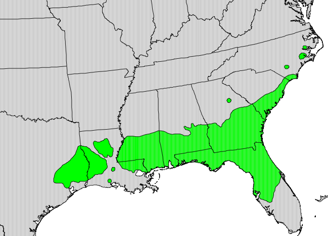 В природе ареал вида охватывает юго-восточные штаты США (от Северной Каролины до Флориды и Техаса). Как декоративное растение выращивается в Грузии, Крыму, Средней Азии, некоторых районах Краснодарского края России, Астраханской области и в Киеве. В культуре с 1734 года.
