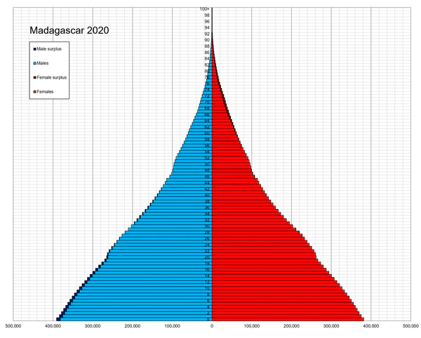 В результате обезлесения на Мадагаскаре (вырубки и выжигания леса под сельскохозяйственные угодья) — последствий бурного роста населения — начиная со второй половины XX века, к настоящему времени уничтожено более 80 % прежнего лесного покрова острова, оставшиеся территории подвержены опустыниванию[13][14][15][16].