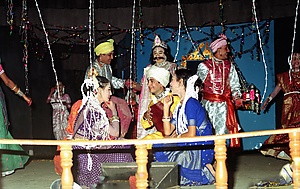 Нео-вайшнавский проповедник Мадхавдев встретил своего гуру Шанкарадеву, основателя нео-вайшнавизма, на острове в событии, известном как Маниканчан Санджог[24]. Мадхавдев и его наставник обогатили ассамскую литературу, написав, среди прочего, Нам Гхоса, Боргит и Бхатима. Следуя примеру этих вайшнавских лидеров, сатры поощряли написание пьес и религиозных песен.