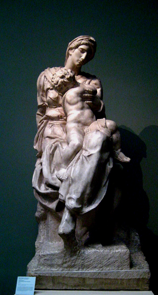 В целом композиция напоминает ранний барельеф Микеланджело «Мадонна у лестницы».