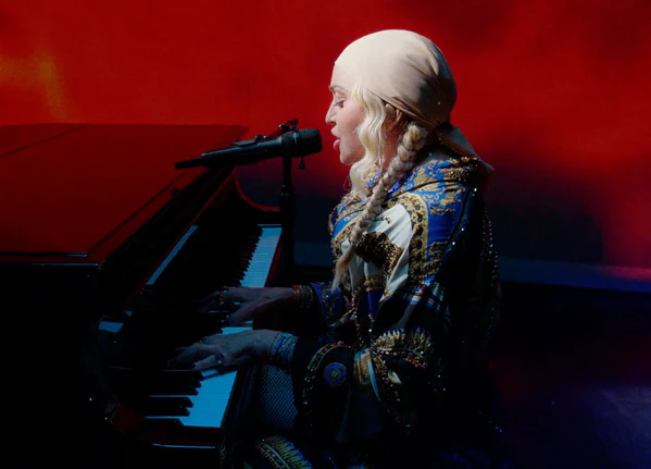 18 мая 2019 года в качестве промо будущего альбома Мадонна выступила как приглашённый гость на конкурсе «Евровидение-2019» в Тель-Авиве (Израиль). Выступление вызвало скандал: Мадонна появилась на сцене с повязкой на глазу а-ля Вотан из второго акта оперы «Валькирия» запрещённого в Израиле за антисемитизм Рихарда Вагнера (1813—1883), также использовав визуализацию темы огня из третьего акта[270]. Во время политизированного перформанса по какой-то причине она испытывала трудности с вокалом во время исполнения первой песни. По версии популярного преподавателя по вокалу Тристана Паредеса, ошибочно включённый техником автотюн (не путать с вокодером) уносил вокал на неверные ноты, поскольку американка выступала сразу после использовавшей автотюн израильтянки Неты Барзилай[271][272].