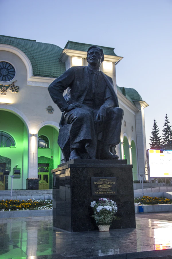 - Неотъемлемой частью Уфы стал памятник Мажиту Гафури перед зданием театра, скульптура создана народным художником СССР, лауреатом Ленинской премии Львом Кербелем и архитектором Львом Хихлухой.