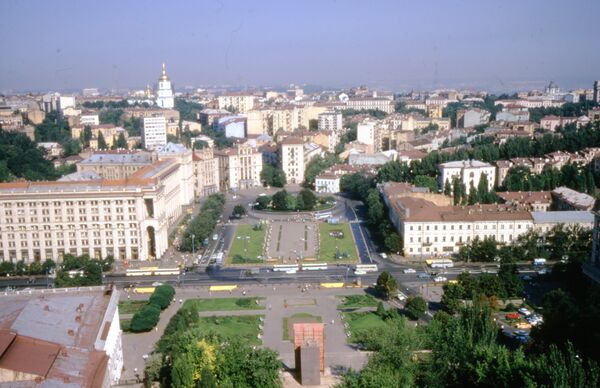 В 1944 году был объявлен конкурс на лучший проект восстановления Крещатика, прилегающих улиц и площадей. В этих проектах площади Калинина, располагавшейся теперь по обе стороны Крещатика, отводилась роль главной площади города. Современная застройка площади образована зданиями 1950-х — 1970-х годов. В 1961 году было возведено здание гостиницы «Москва» (c 2001 года — «Украина»). В последующие годы площадь неоднократно перестраивалась и реконструировалась.