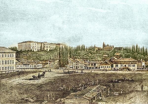 Площадь как таковая сформировалась в 1830-х годах, когда были снесены остатки оборонительных валов. Тогда же она получила название Крещатицкая — от названия улицы, к которой она непосредственно примыкала. В 1876 году на площади было построено здание Городской думы, и она получила название Думской. В 1913 году перед зданием Городской думы был открыт памятник Столыпину, снесённый сразу после Февральской революции.