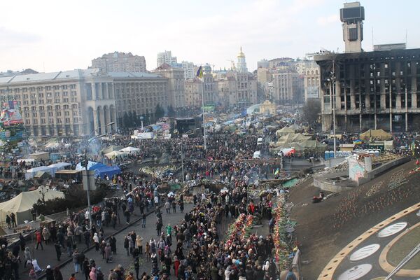 В декабре 2013 года на Площади Независимости собирались сотни тысяч протестующих с требованиями отставки правительства и президента Януковича.