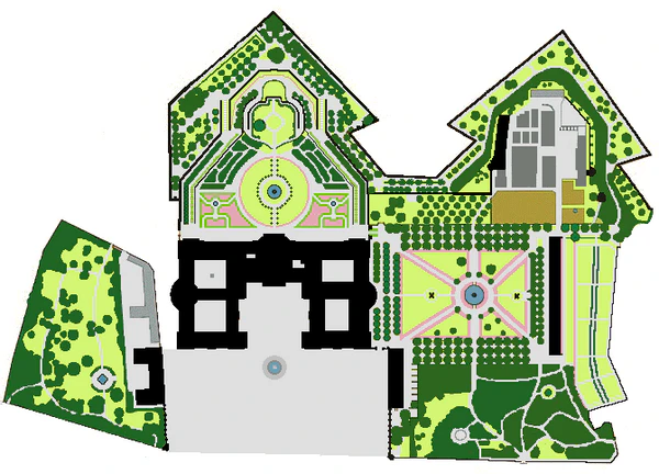 Хотя в это время в Европе уже набирали популярность английские пейзажные парки, порученный ему Восточный сад был заложен как «регулярный», то есть его планы подчинялись законам симметрии — по французским образцам садово-паркового искусства. Причем, как отмечают историки, разработан его план был с использованием всех приемов и уловок этого стиля организации ландшафта.