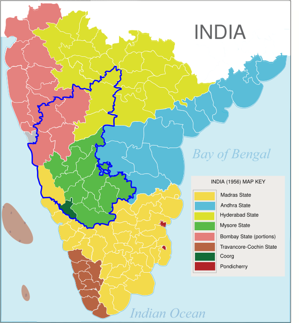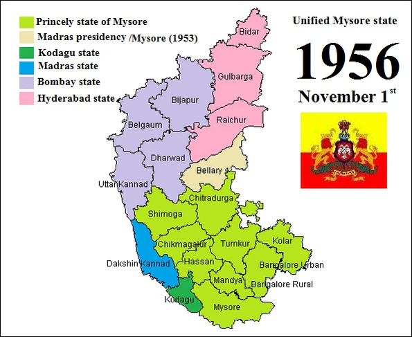 В 1956 году правительством Индии был принят Акт о реорганизации штатов. В соответствии с этим актом административное деление страны должно было быть реорганизовано так, чтобы штаты стали моноязычными. В связи с тем, что значительная часть говорящих на языке каннада уже проживала на территории штата Майсур, его было решено сделать ядром каннадаязычного штата, поэтому к нему были присоединены штат Кург, южная часть штата Бомбей и западная часть бывшего штата Хайдарабад.