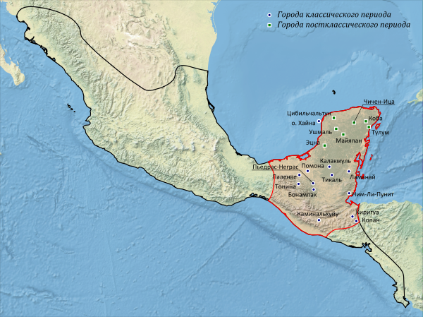 Ма́йя — цивилизация Мезоамерики, известная благодаря своей письменности, искусству, архитектуре, математической и астрономической системам. Начало её формирования относят к предклассической эре (2000 год до н. э. — 250 год н. э.), большинство городов Майя достигло пика своего развития в классический период (250—900 годы н. э.). К моменту прибытия конкистадоров была в глубоком упадке. Майя строили каменные города, многие из которых были покинуты задолго до прихода европейцев, другие были обитаемы и после. Календарь, разработанный майя, использовали и другие народы Центральной Америки. Применялась иероглифическая система письма, в большей части расшифрованная. Сохранились многочисленные надписи на памятниках. Создали эффективную систему земледелия, имели глубокие знания в области астрономии.