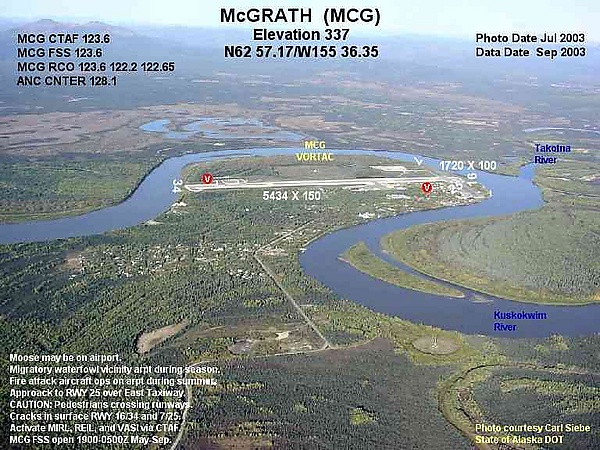 Аэропорт Макграт занимает площадь в 259 гектар, расположен на высоте 105 метров над уровнем моря и эксплуатирует две взлётно-посадочные полосы[1]: