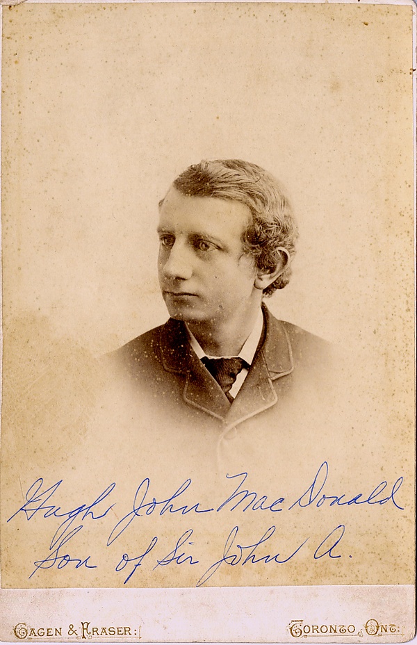 - После возвращения старшего Макдональда на пост премьер-министра сын вёл в семейной фирме большинство дел, хотя многих клиентов ему обеспечивало политическое влияние отца[244]. В начале 1880-х Хью перебрался в быстро развивавшийся Виннипег[245]. Овдовев, во второй раз он женился в 1883 году на Агнес Гертруд Ванкафнет — дочери заместителя министра внутренних дел и личного друга сэра Джона[246]. Макдональд-сын сделал успешную карьеру как адвокат[247], в 1891 году был избран в федеральный парламент от Консервативной партии, вторично вернувшись туда уже после смерти отца, а позже был премьером Манитобы. Остаток активной карьеры провёл в качестве судьи[248].