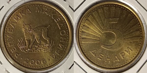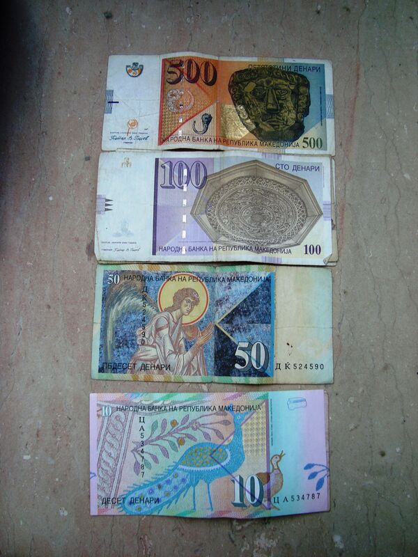 | Банкноты | 10, 50, 100, 200, 500, 1000, 2000 и 5000 денаров |