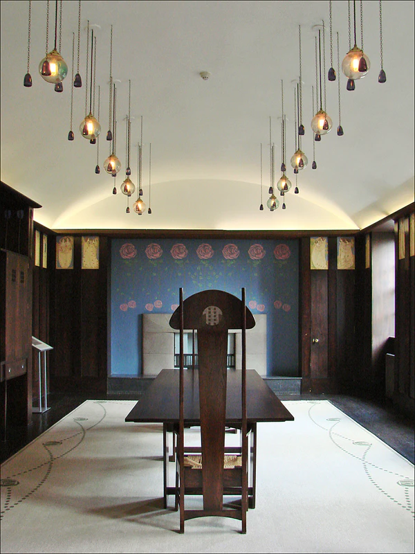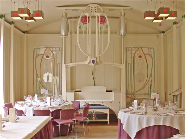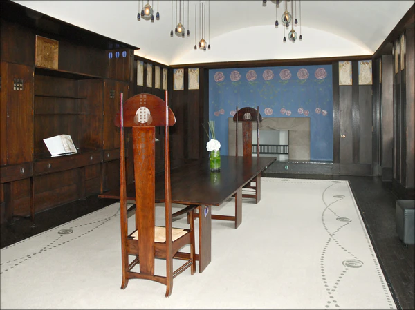 Многие декоративные детали его архитектурных проектов были разработаны самим Макинтошем, но детализированы его женой Маргарет Макдональд. Их совместные проекты были показаны на восьмой выставке Венского сецессиона в 1900 году.