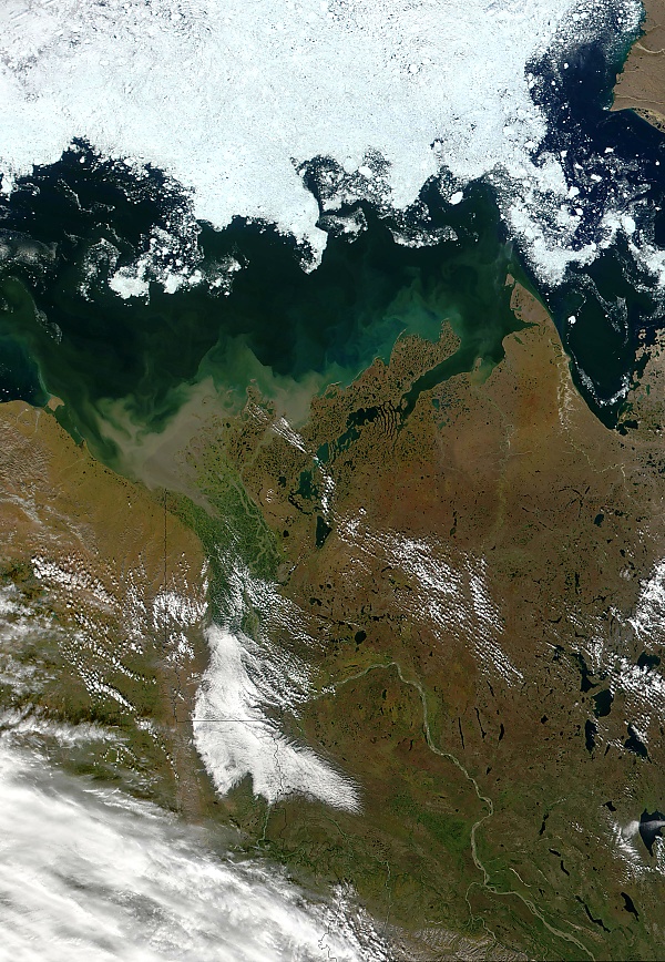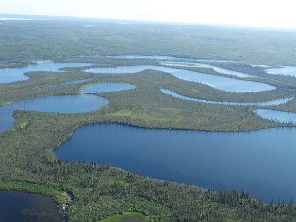 Под территорией всей низменности Маккензи к северу от Большого Невольничьего озера залегает вечная мерзлота[2]. Долина реки сильно заболочена, покрыта еловым лесом. В центральной и южной части бассейна Маккензи преобладает ель сизая, местами как единственный вид деревьев, а в других местах перемежаемая сосной Банкса, сосной скрученной, тополем осинообразным и бальзамическим. Часто, но не регулярно встречается берёза бумажная. На заболоченных участках обычна ель чёрная, иногда смешанная с лиственницей американской[6]. Леса чёрной ели характерны для островов в дельте Маккензи, где они постепенно редеют по мере приближения к океану[1].