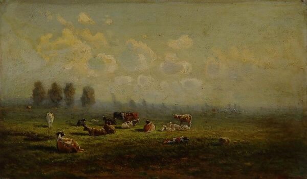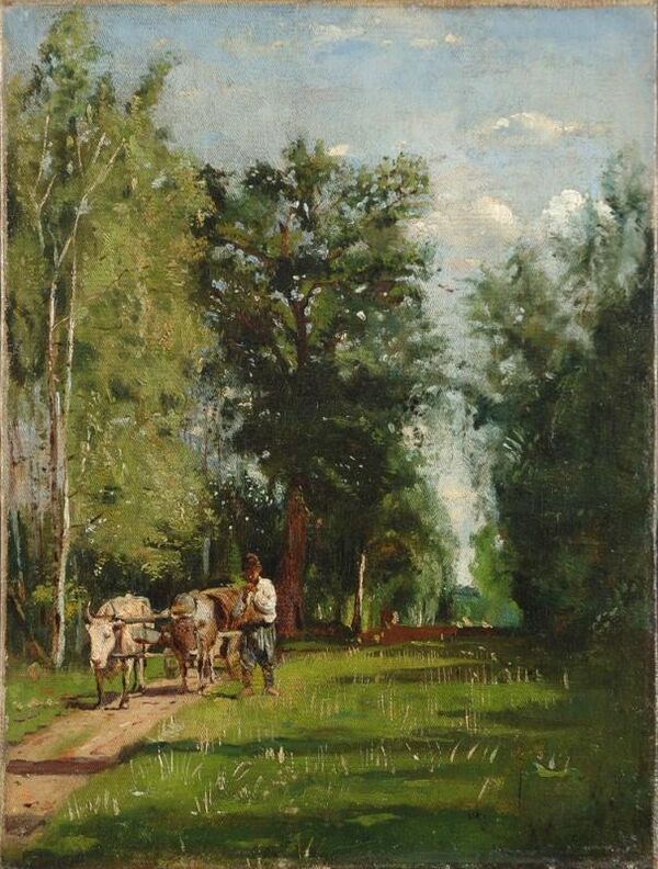•«В лесу», 1874, дерево, масло, 14 х 19,5. Поступила в музей в 1975 году.