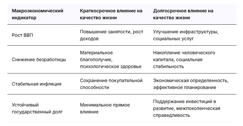 | Макроэкономические показатели качества жизни | |