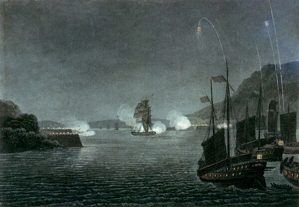 В ноябре 1816 года Максвелл приплыл к устью Жемчужной реки, намереваясь подняться по ней к Хуанпу, чтобы присоединиться к Амхерсту. Миссия Амхерста потерпела неудачу из-за отказа британцев совершить перед китайским императором коутоу и предложить ему дань, как повелителю. Амхерст со свитой вынужден был уехать в Хуанпу, не завершив миссию. Местный мандарин не позволил Alceste войти в реку, пригрозив потопить фрегат в случае неповиновения. Максвелл заявил, что войдёт в реку с разрешения мандарина или без такового. Британский фрегат атаковал китайские джонки, блокировавшие реку, и подавил береговые батареи, быстро заставив их защитников ретироваться. Не понеся потерь, фрегат поднялся вверх по реке до Хуанпу, не встретив других препятствий. Китайские потери, как сообщалось, составляли 47 убитыми и множество ранеными[30]. В начале боя Максвелл лично произвёл первый выстрел из пушки, таким образом дав понять, что он взял на себя личную ответственность за открытие огня (по сообщениям, первое пушечное ядро имело ироническую надпись «Tribute from the King of England to the Chinese», «дань от короля Англии китайцам»[31]. Забрав Амхерста и его отряд в Хуанпу, Максвелл поплыл обратно по Жемчужной реки и в январе 1817 года направился назад в Великобританию, посетив по пути Макао и Манилу[31].