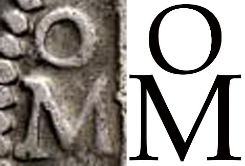 В нумизматической литературе обращается внимание на совпадение знака Московского денежного двора со знаком денежного двора в Мехико, помещенным на монетах в восемь реалов (макукинах). Высказано предположение, что непосредственное знакомство русских денежников с монетным сырьем — мексиканскими макукинами, на которых знак монетного двора с буквой «М» и буквой «о» над нею изображался, как правило, в крупном масштабе, и обусловило выбор этого сочетания как эмблемы Московского денежного двора[10]. Впервые данный знак был помещён на копейках Фёдора, выпущенных после 1596 года.