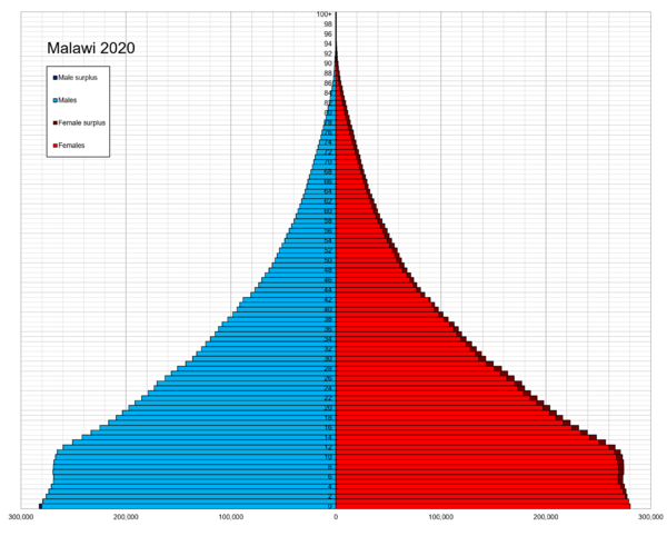Средняя продолжительность жизни — 55,1 года (2012)[18]. По данным ВОЗ Малави занимала последнее место в мире по данному показателю (источник). По данным того же источника, к 2016 году продолжительность жизни увеличилась и составила 64,2 года.