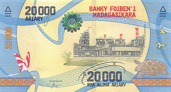 | Банкноты | 100, 200, 500, 1000, 2000, 5000, 10 000, 20 000 ариари |