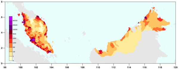 По данным переписи 2010 года, население Малайзии составляет 28 334 135 человек (44-е место в мире)[30]. Плотность населения в среднем составляет около 86 чел/км². Население размещено довольно неравномерно, так 79,6 % малайзийцев проживает в полуостровной части страны и всего 20,4 % — в восточной части[31]. Городское население — около 70 %. Годовой прирост составляет 2,4 %; около 34 % населения страны — лица в возрасте младше 15 лет.